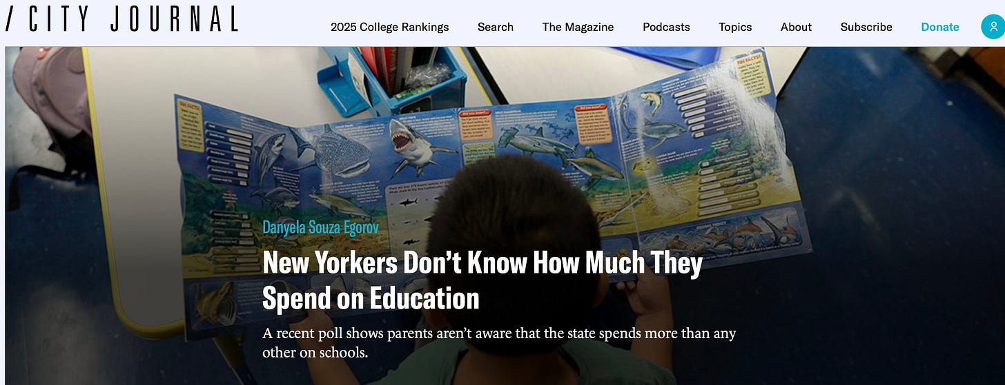 The survey from 50CAN confirms that the NY public doesn't know that we are the #1 state in education spending
