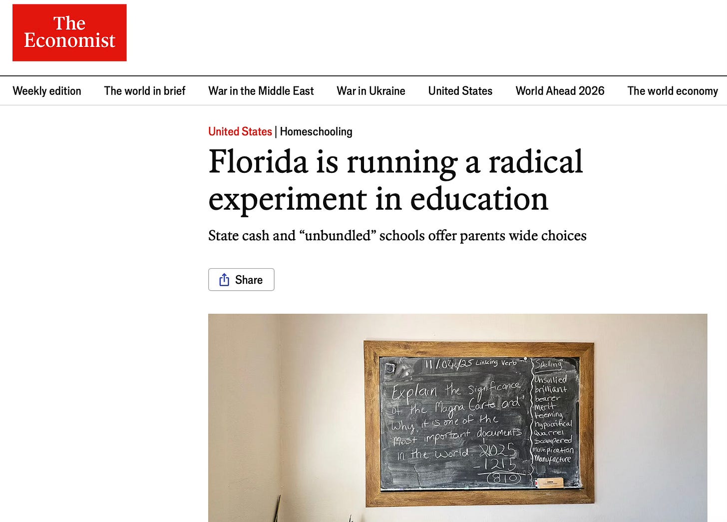 The Economist wrote about the experiment that Florida is running on education and how it is expanding the “a la carte” education options for homeschoolers as well as making public schools to adapt to the new reality.